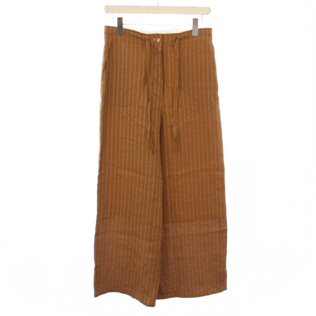 【中古】タクルタートル turkle turtle ワイドパンツ ジップフライ ストライプ リネン 茶 /BM レディース 【ベクトル 古着】 250909