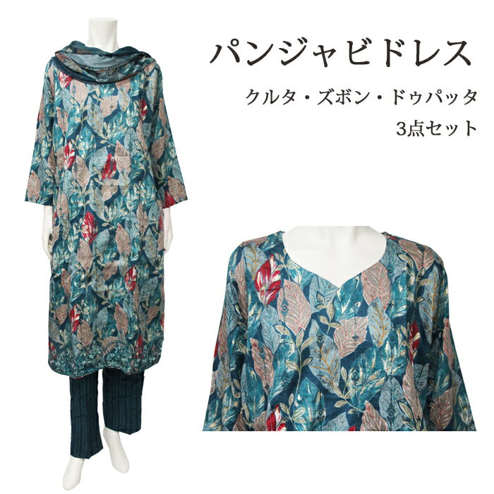 <L>パンジャビドレス:クルタ・ズボン ブルーグリーン系 / インド 服 民族衣装 アジアン ファッション パンジャビ ドレス カミーズ エスニック