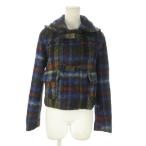シーバイクロエ SEE BY CHLOE フーディショートコート 起毛 アルパカ混 ダッフル ベルト チェック 総柄 2 XS 青