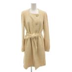 クロエ CHLOE ノーカラーコート スクエアネック ウエストベルト シルク混 ひざ丈 36 ベージュ /FF ■GY62 レディース