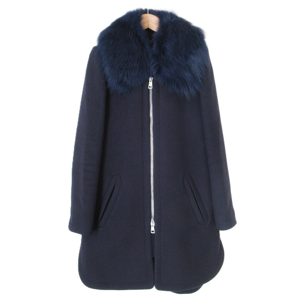 【中古】良品 Chloe クロエ シアリング ラムファー付き 2WAY ウールコート 15AMA32-15A072 サイズ34 ダークネイビー レディース Luxs ブランド古着のリュクス