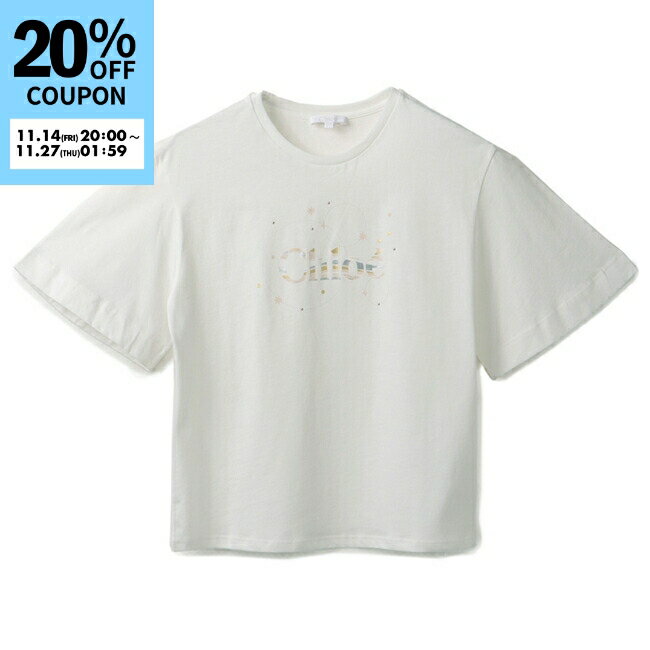 【11/14-11/16限定・最大2万円OFFクーポン配布中】Chloe KIDS クロエ キッズ Tシャツ C20658 レディース ガールズ 半袖 カットソー ロゴT 刺繍 クルーネック クロップド丈 148/IVORY