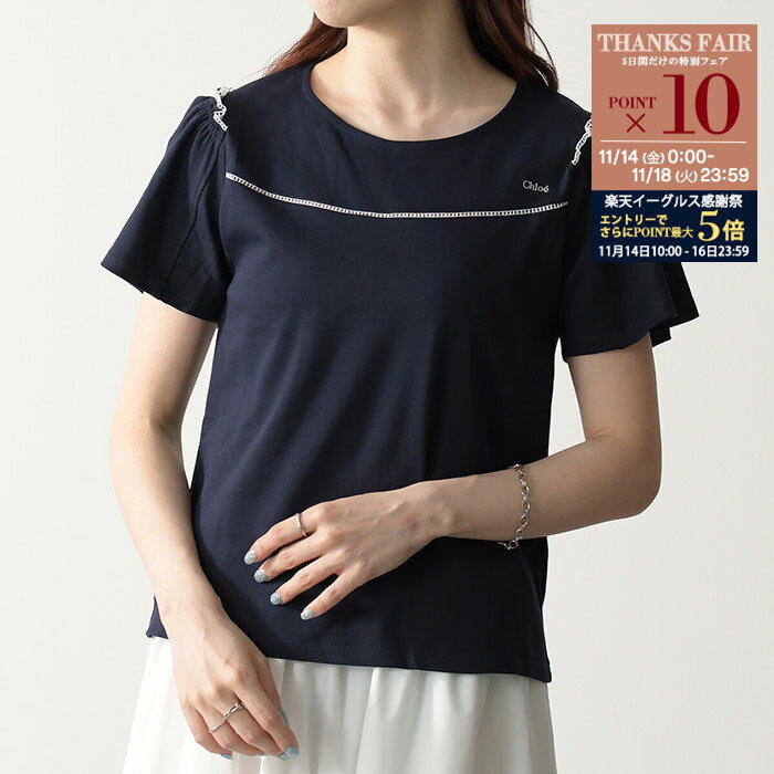 【P10倍対象&金土日限定クーポン配布中】CHLOE クロエ トップス 装飾入り Tシャツ C20115 CHC24SB20115 レディース キッズ NAVY ネイビー 半袖 コットン ロゴ カジュアル ミニロゴ