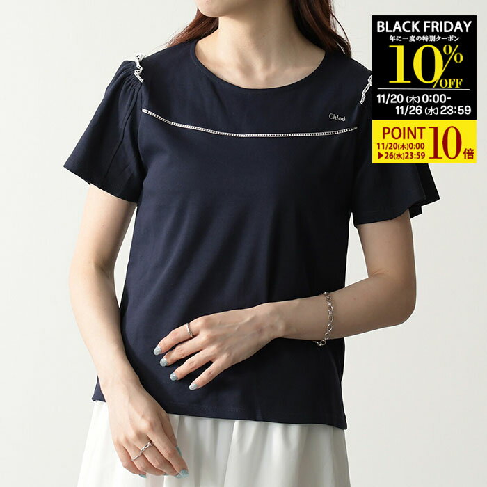 【10%OFFクーポン&P10倍】CHLOE クロエ トップス 装飾入り Tシャツ C20115 CHC24SB20115 レディース キッズ NAVY ネイビー 半袖 コットン ロゴ カジュアル ミニロゴ