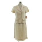 未使用品 クロエ CHLOE スーツ スカートスーツ ジャケット テーラードカラー 半袖 スカート 台形 ミディ丈 裾フレア ベージュ 42