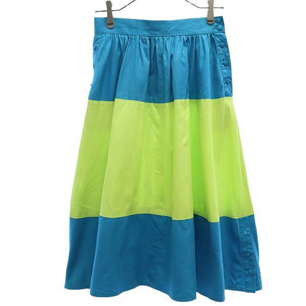古着 miss chloe ミスクロエ 日本製 切替 ロング丈 切替 ギャザースカート 42 ブルー×グリーン レディース 【中古】 【PD】