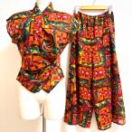 #snc ミスクロエ Miss Chloe セットアップ ツーピース パンツ 40 オレンジ 緑 総柄 ノースリーブ レディース [861161]