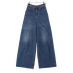 クロエ Chloe 24年 ロゴレザーパッチ ワイド レッグ ジーンズ デニムパンツ ナイトブルー 24【中古】【正規品保証】