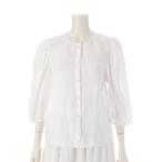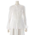 クロエ 23SS ラミー クルミボタン フリルスリーブ シアー 7分袖 ノーカラー ブラウス CHC23SHT1401610136 ホワイト 36【中古】