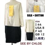 シーバイクロエ/SEE BY CHLOE★シルク×コットン/春夏ワンピース【44/レディースL程度/オフホワイト×黒】透け感/微光沢/dress◆cBH627