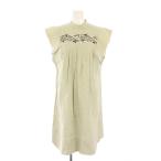 クロエ CHLOE フレアワンピース ひざ丈 ノースリーブ 刺繍 麻 リネン 38 黄緑 ライトグリーン /BB レディース