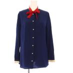 グッチ GUCCI ブラウス シャツ 長袖 GGパールボタン ボウタイ 36 紺 498592 /KH レディース