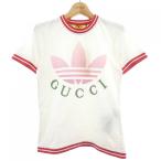 未使用品☆GUCCI×adidas グッチ×アディダス 703002 トレフォイル ロゴ総柄 半袖シャツ オレンジ系 36 イタリア製 正規品 レディース【中古】