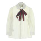 GUCCI(グッチ) サイズ:36 シェリーライン ボウタイ 丸襟 ギャザースリーブ 長袖シャツ ブラウス ホワイト レディース【中古】【程度B】【カラーホワイト】【オンライン限定商品】