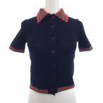 グッチ GUCCI シャツワンピース ロング丈 ポロ 半袖 シェリーライン ハーフボタン 黒 ブラック M ☆AA★ レディース