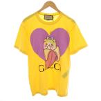 グッチ ばなにゃ Tシャツ カットソー クルーネック 半袖 プリント タグ付き オーバーサイズ S 黄 イエロー ピンク 615044 レディース