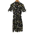 美品 GUCCI グッチ リーフプリント ベルト付き シャツドレス ワンピース サイズ36 ブラック レディース 古着 中古