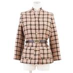 【極美品】GUCCI グッチ ツイードジャケット レディース 36 GGメタルボタン インターロッキング ラメ ベルト付属 ピンクベージュ ブラウン