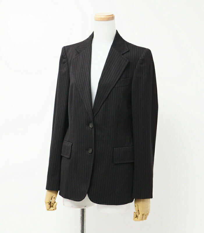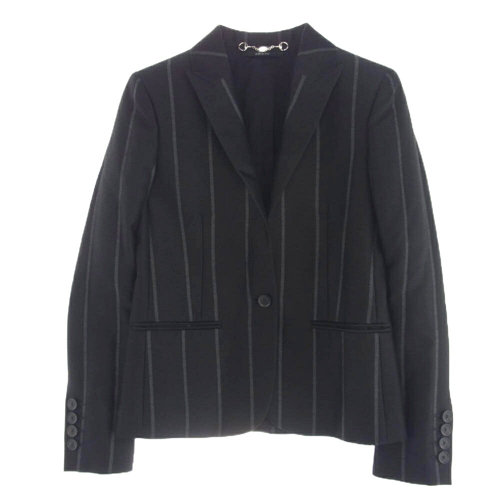 GUCCI グッチ 354789 シルク混 コットン ストライプ テーラード ジャケット ブラック系 レディース【古着】【中古】