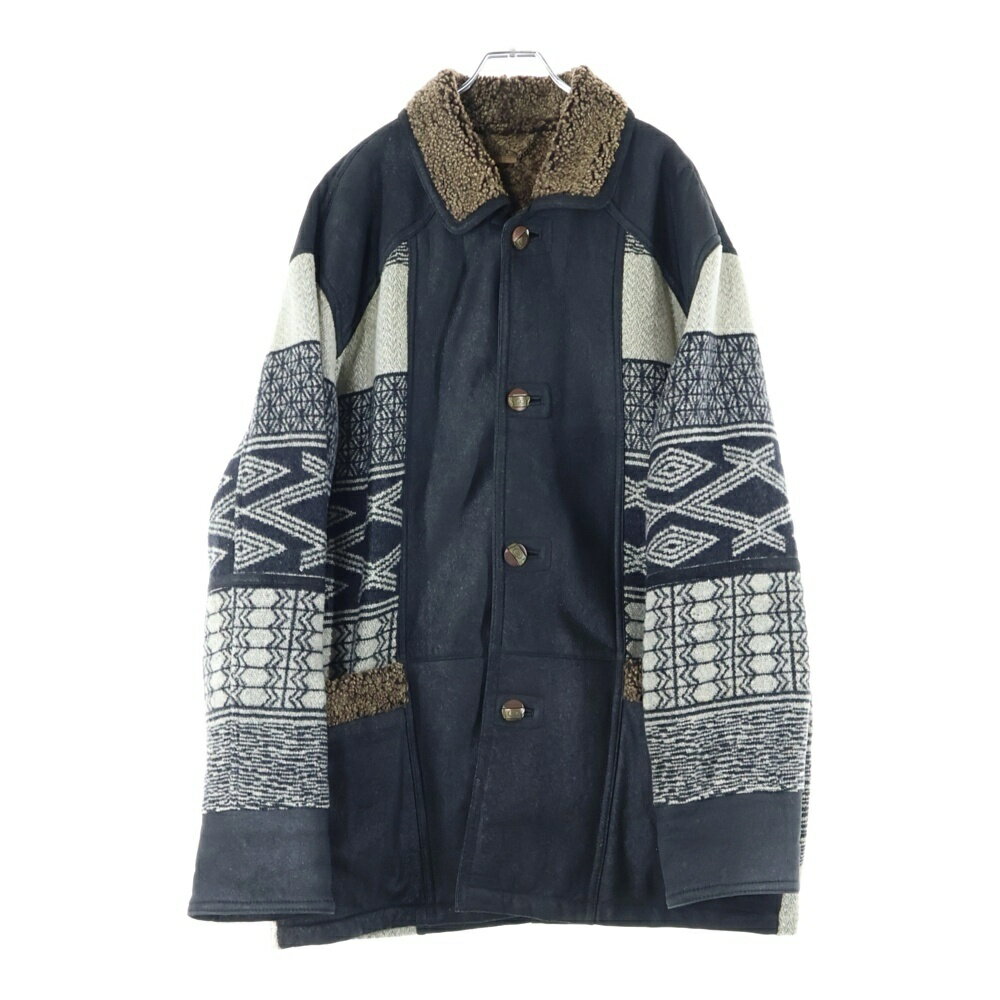 PAOLO GUCCI(パオロ グッチ) サイズ:103ー85ー175 ノルディック柄 切り替え スウェードレザー ボア ロングジャケット コート ブラック/グレー【中古】【程度B】【カラーブラック】【オンライン限定商品】