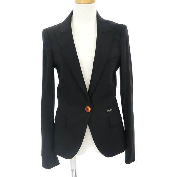 【中古】良品 GUCCI グッチ トムフォード期 2002年製 ストレッチ シングル テーラードジャケット サイズ44 ブラック レディース Luxs ブランド古着のリュクス