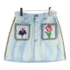 GUCCI グッチ Flower Embroidered Studded Denim Skirt フラワー刺繍 スタッズ デニムスカート インディゴ