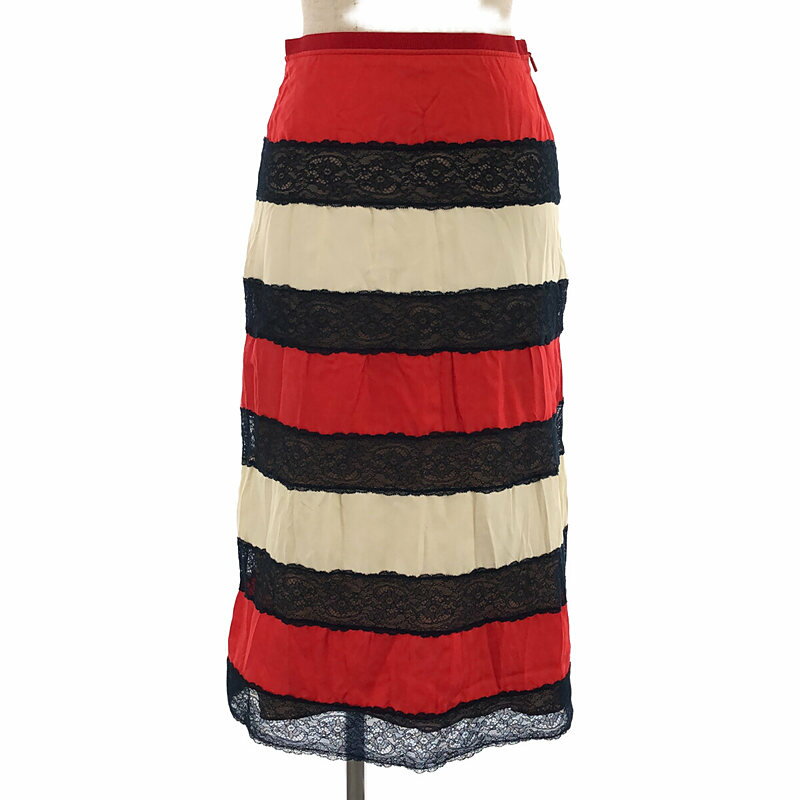 【超美品】GUCCI グッチ ニットスカート アイボリー×ネイビー×レッド レディース M ブランド1