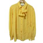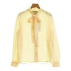 美品 クリーニング済 GUCCI グッチ シルク フリルタイ 長袖 ブラウス シャツ 36 イエロー レディース 古着 中古