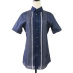 良品 GUCCI グッチ Skinny ドット ショートスリーブ コットンシアーシャツ ブラウス 38/15 ネイビー レディース 古着 中古