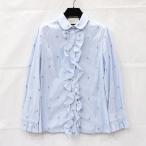 GUCCI グッチ イタリア製 ストライプ フリル ブラウス コットン 丸襟 刺繍 ブルー レディース #36 430885 Z346A 2016 中古 送料無料!!
