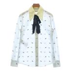 美品 GUCCI グッチ 七分袖 オープンカラー 刺繍 ブラウス シャツ サイズ42 ホワイト レディース 古着 中古