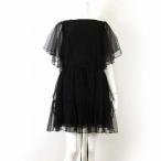 未使用品 グッチ GUCCI 23SS ワンピース ドレスワンピース シルク 100% チュール フリル 半袖 M 40 黒 ブラック 国内正規品 美品