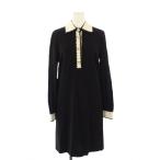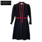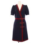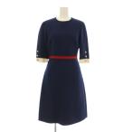 GUCCI グッチ 453979 ネイビー×ピンク リボンタイ ワンピース ネイビー ピンク 36 ワンピース ウール レディース 中古