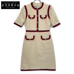 GUCCI グッチ 550266 18年 アイボリー バラリボン ツイードノースリーブドレス ワンピース アイボリー 38 ワンピース コットン レディース 中古