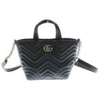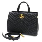 GUCCI グッチ GGマーモント スモールトートバッグ ハンドバッグ ショルダーバッグ ブラック レザー 847386 ゴールド金具
