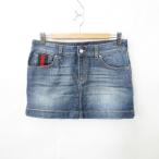 グッチ GUCCI スカート 台形スカート デニム ミニ丈 ロゴ ストレッチ 綿 インディゴ ブルー 40☆AA★ レディース