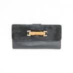 グッチ GUCCI 財布 長財布 バンブー レザー スエード ブラック 黒 ☆AA★ レディース