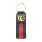 グッチ GUCCI オフィディア キーリング キーホルダー GGマーモント シェリーライン 刻印 キャンバス レザー 黒 ブラック /AH8 ■GY11