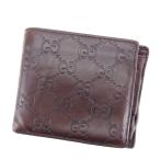 【週末タイムSALE★30%OFF】グッチ 二つ折り 財布 レディース グッチシマ ブラウン 中古