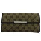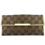 【週末タイムSALE★30%OFF】グッチ GUCCI 長財布 GGキャンバス ロゴプレート ベージュ ブラウン レディース 中古