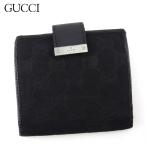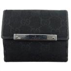 【週末タイムSALE★30%OFF】グッチ 二つ折り 財布 ミニ財布 レディース メンズ GGキャンバス ブラック シルバー 中古