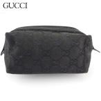 【週末タイムSALE★30%OFF】グッチ ポーチ 化粧ポーチ レディース メンズ GGキャンバス ブラック シルバー 中古