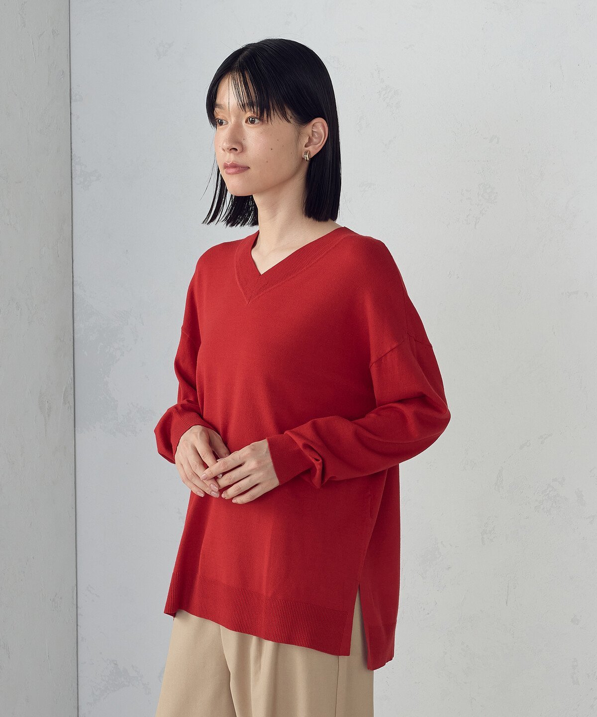 COMME CA ISM 【ウォッシャブル】ベーシック Vネックオーバーサイズニット コムサイズム トップス ニット ベージュ ブラック ホワイト レッド【送料無料】