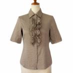 SAY COMMECA コムサイズム ブラウス シャツ フリル ストライプ 半袖 S ベージュ レディース
