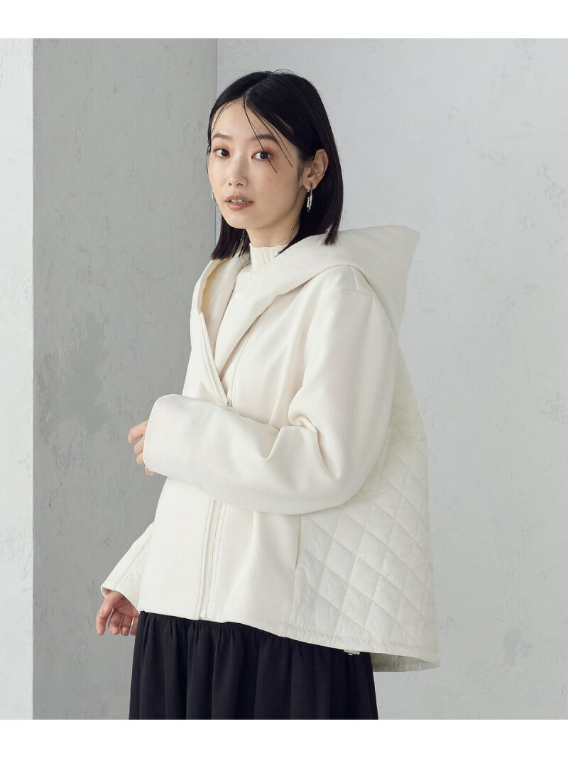 COMME CA ISM コンビネーションキルトコート コムサイズム ジャケット・アウター その他のジャケット・アウター ブラック ホワイト ベージュ【送料無料】