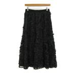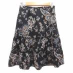 コムサイズム COMME CA ISM フレアスカート ひざ丈 フリル 総柄 M 黒 ブラック /YK レディース