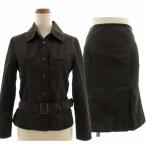 【中古】コムサデモード COMME CA DU MODE セットアップ スーツ ジャケット ステンカラー ベルト スカート マーメイド ミディ丈 切替え コットン 日本製 カーキブラウン ブラウン 茶 5 3 レディース 【ベクトル 古着】 230809