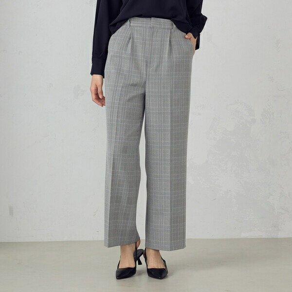 コムサデモード COMME CA DU MODE ワイドパンツ 9 グレー系 チェック柄 タック センタープレス ストレッチ レディース