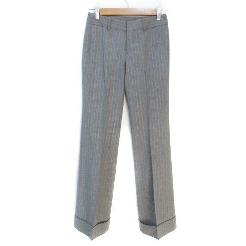 【中古】コムサデモード COMME CA DU MODE スラックスパンツ フレアパンツ ロング丈 ロールアップ ストライプ柄 7 S 杢グレー 白 ホワイト /FF28 レディース 【ベクトル 古着】 241211