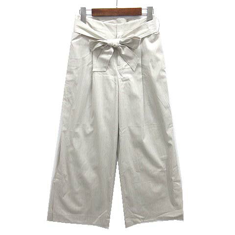 【中古】コムサ COMME CA ピンストライプ タック ワイド パンツ ウエストゴム リボン ベージュ 9 レディース 【ベクトル 古着】 250731